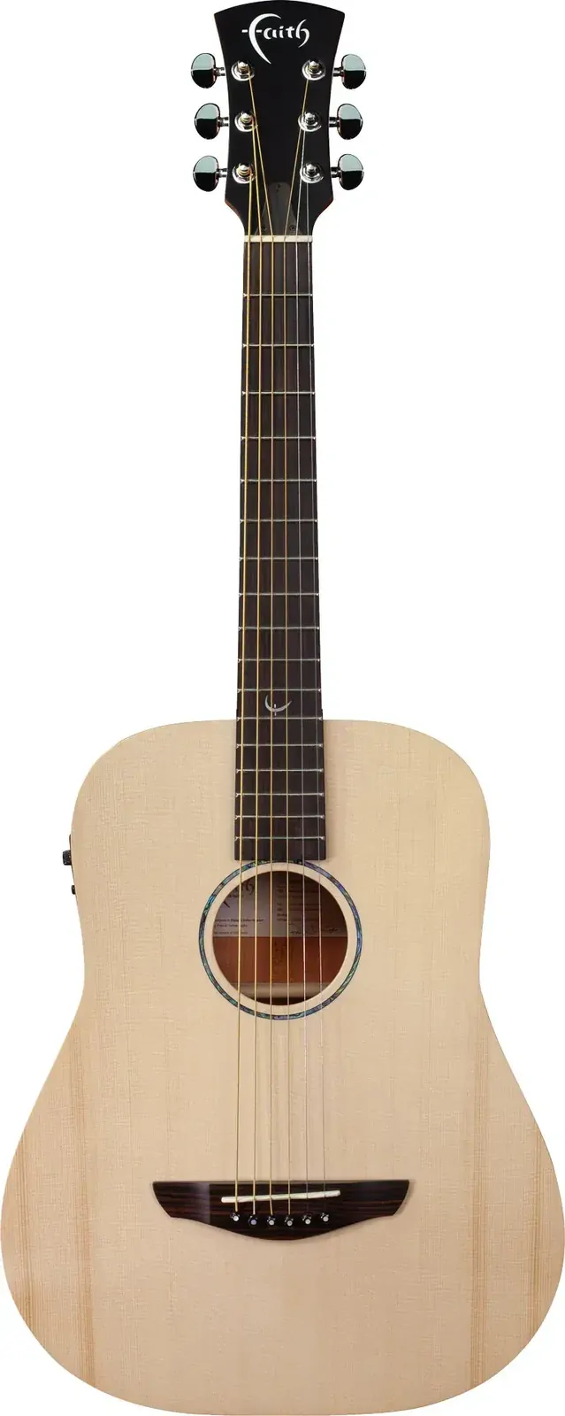 The Faith Nomad Mini-Saturn Solid Spruce/Mahogany Travel Acoustic Guitar with Pickup is a compact dreadnought-style guitar built for portability without sacrificing tone. Featuring a solid spruce top with solid mahogany back and sides, it delivers a bright, lively sound with excellent projection. The short 590mm scale and 12th-fret neck join make it comfortable to play and perfect for travel. Ebony is used for the fingerboard, bridge, and headplate, while hand-scalloped spruce bracing ensures a responsive, resonant tone. Equipped with a Fishman Sonicore pickup and Isys T preamp with onboard tuner and EQ, it’s ready for stage or studio use. Supplied with a padded gig bag, it’s designed to fit in most airline overhead lockers.