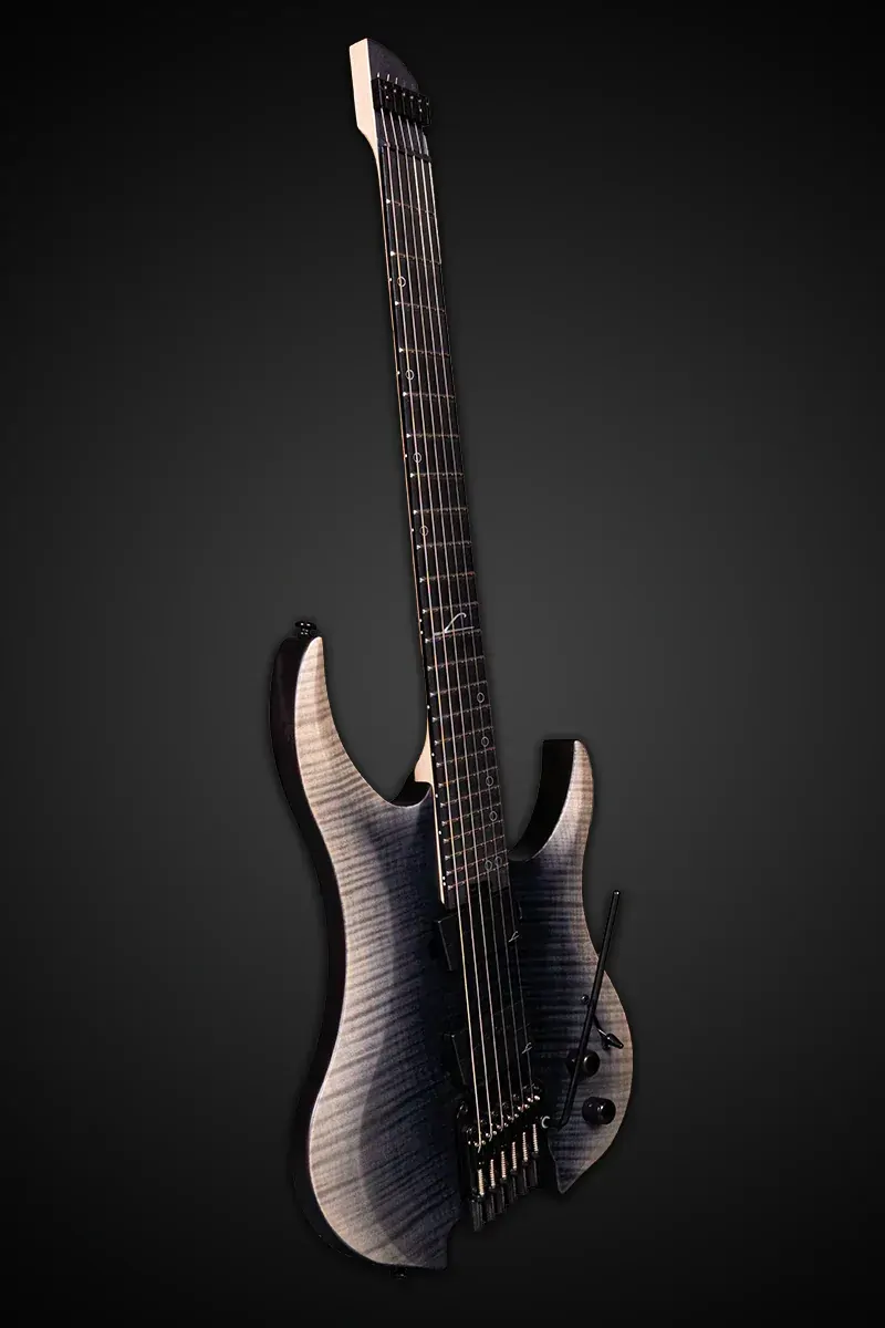 The Legator G6FT Ghost is a high-performance shred machine designed for speed, comfort, and precision. Its multi-scale 25.5"–26.5" layout improves string tension and tuning stability, while the bolt-on 3-piece maple neck and 12"–16" compound radius Richlite fingerboard provide a fast, smooth playing surface. A lightweight mahogany body with a flame maple top ensures rich tone with striking looks. Equipped with Legator AfterShock active humbuckers, the G6FT delivers tight, aggressive tones ideal for modern metal. The Ghost-exclusive floating tremolo offers expressive pitch control and tuning stability, bolstered by a brass locking headpiece.