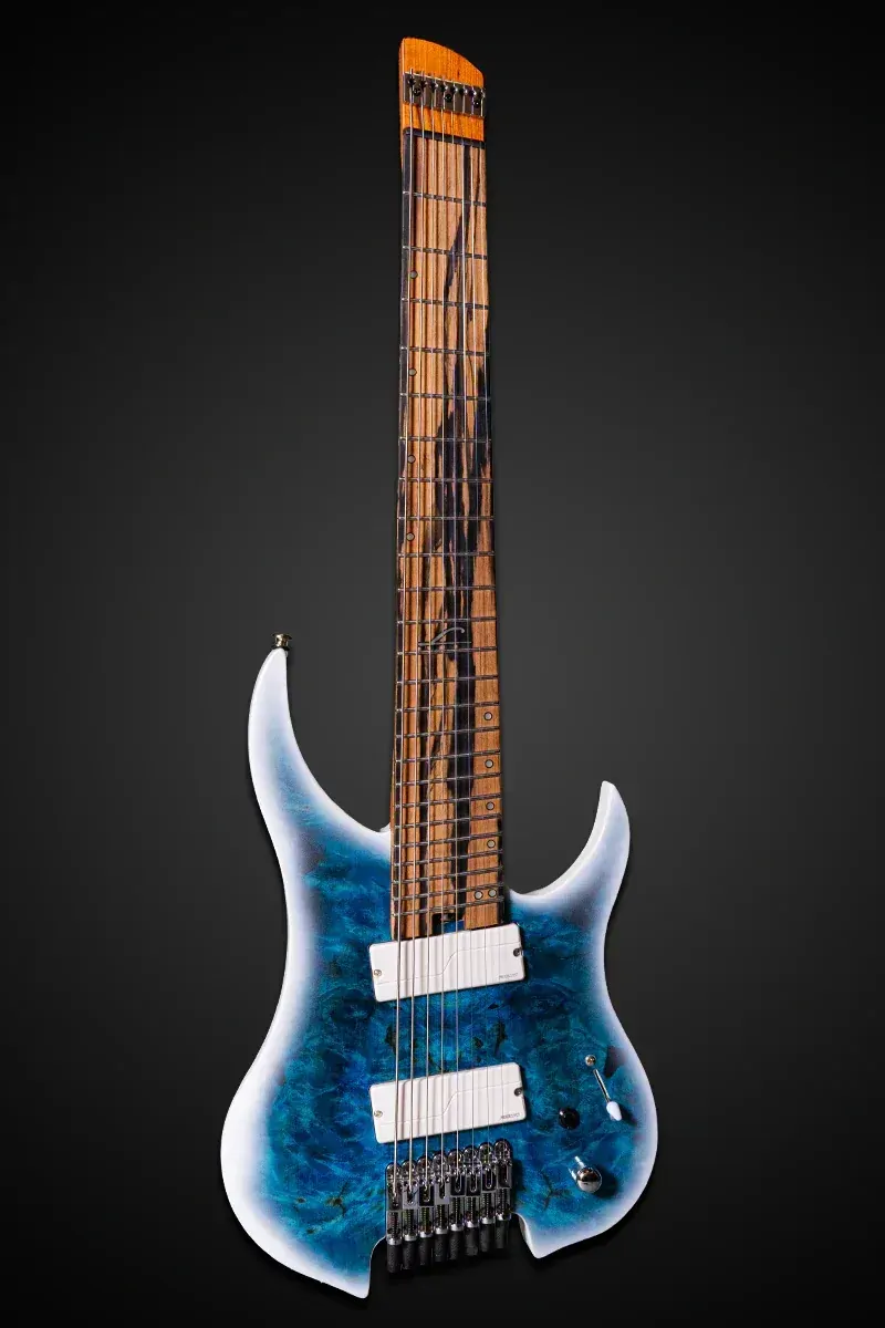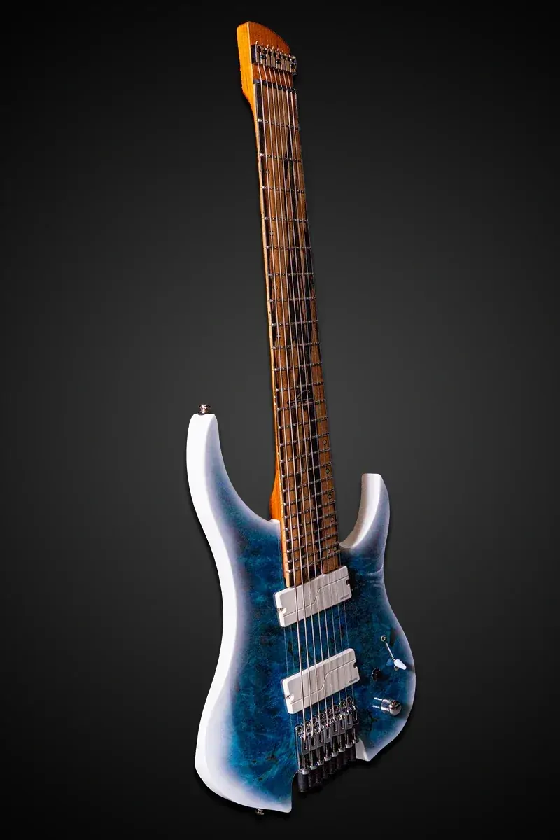The Legator G8FOD Ghost Overdrive is an 8-string multi-scale powerhouse, engineered for modern players who demand precision, clarity, and extended-range versatility. Featuring a 26.5”–27.5” multi-scale design, this guitar provides balanced tension and enhanced playability across all strings. The bolt-on roasted maple neck and 18” radius pale moon ebony fingerboard offer a smooth and comfortable feel, while Luminlay side dots ensure visibility on dimly lit stages. A California Buckeye Burl top on an alder body delivers both stunning aesthetics and a resonant tonal foundation. Equipped with Fishman Fluence Modern pickups with push/pull voice selection, the G8FOD delivers a range of crushing modern tones. The LED killswitch, master volume, and 3-way blade switch offer further tonal control, while the Legator Ghost-exclusive custom locking head bar and bridge ensure rock-solid tuning stability.