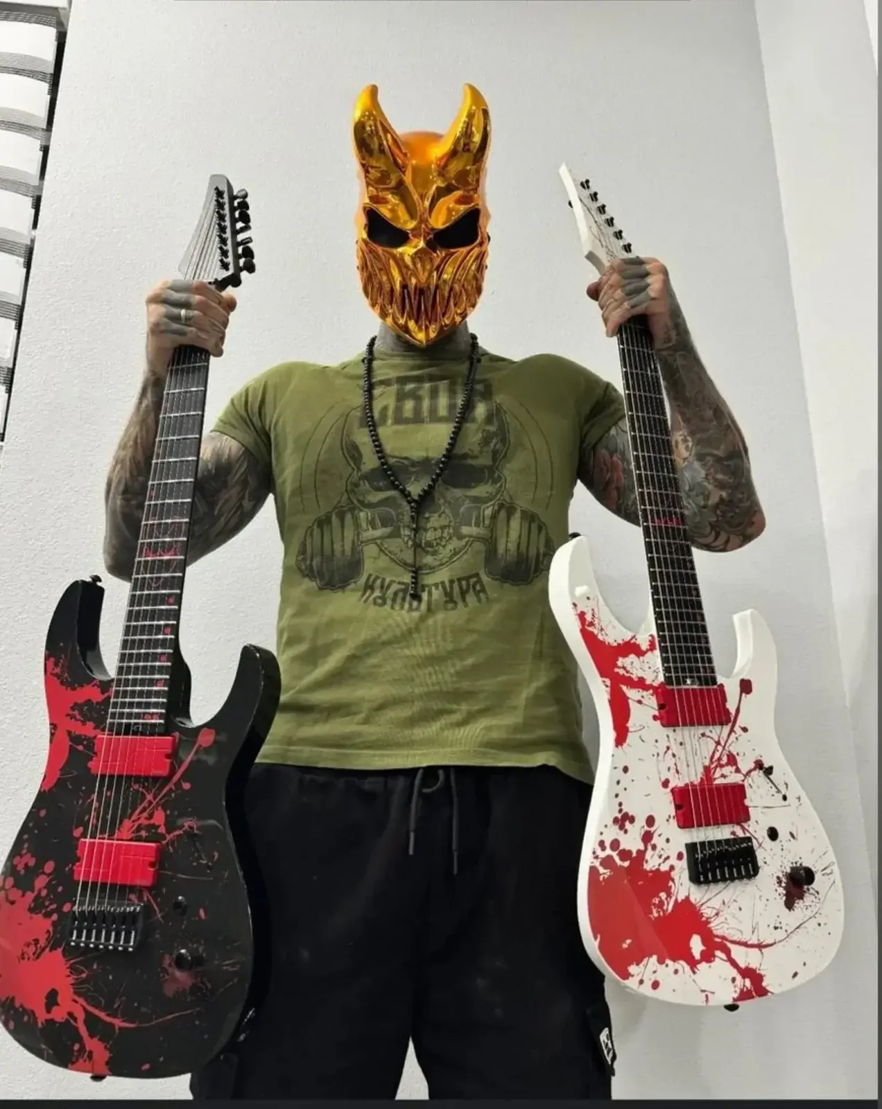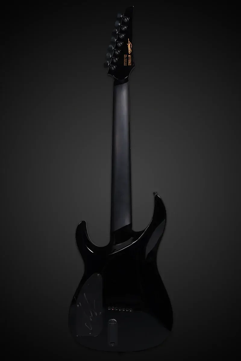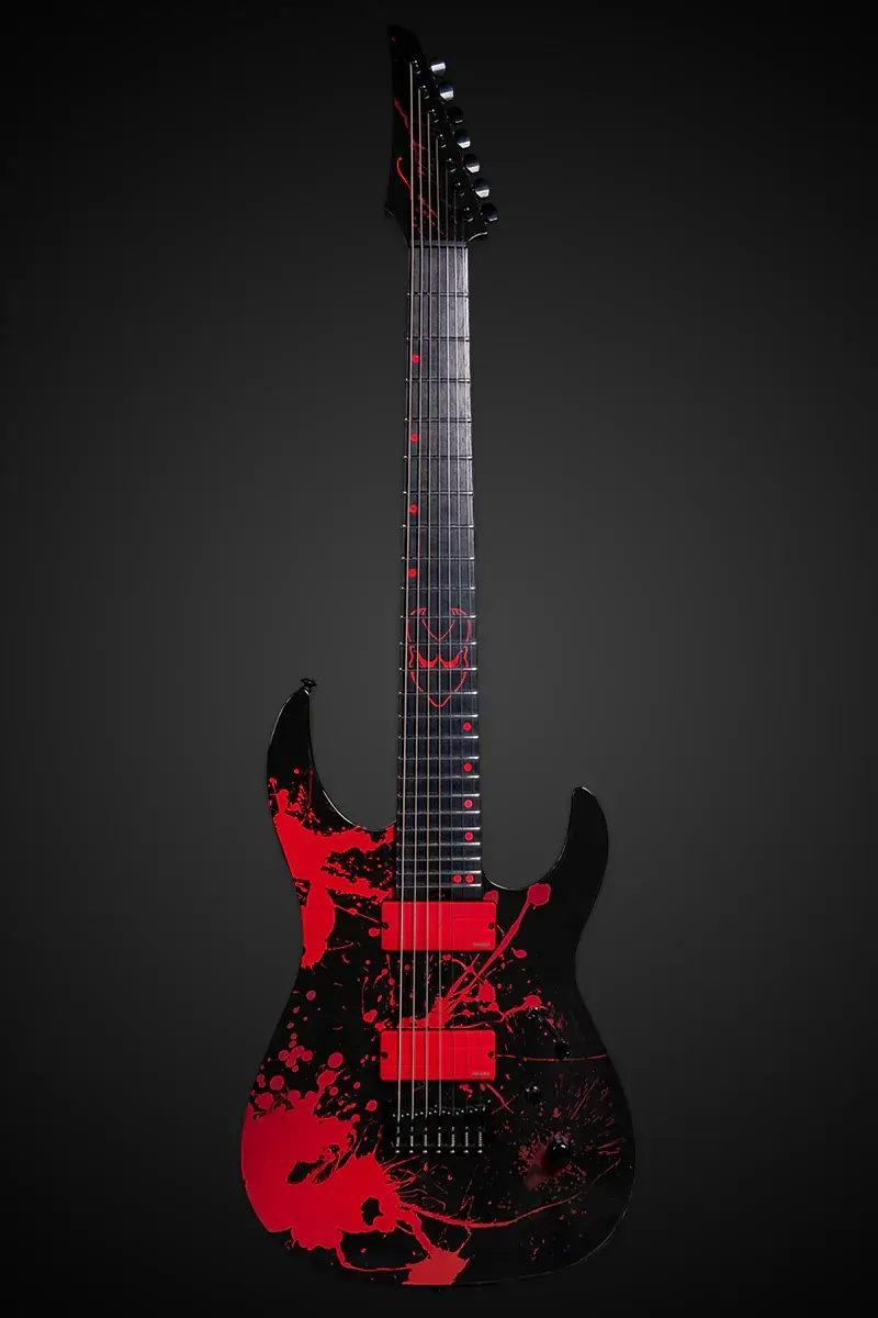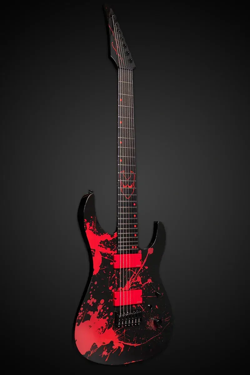 The Legator N7CS Ninja Slaughter is Alex Terrible’s signature 7-string, designed for aggressive, high-gain shredding. This limited edition features a 26.5" scale set-thru 3-piece maple neck, 18" ebony fingerboard with custom red offset dot and mask inlays, and 24 medium jumbo stainless steel frets for fast and precise playing. Equipped with red Fishman Fluence Modern pickups, it delivers a huge array of crushing tones with a push/pull voice selection. It also boasts a Tesi Red LED killswitch. mahogany body, Legator Pro fixed bridge, locking tuners, and comes with a deluxe gig bag.
