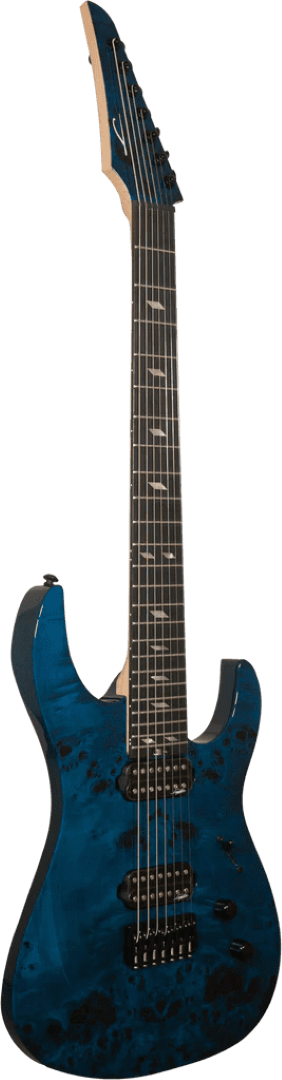 The Super Shred series from Legator offer fantastic value for money, with stand-out features like a super-thin Maple neck, Ebony fretboard, lightweight Mahogany/Poplar Burl body, stainless steel frets, locking tuners, brass bridge, GraphTech nut and new super-hot Aftershock ceramic pickups. These guitars are pro-level shred machines at an affordable price. The classic Ninja design doesn't just look killer, but offers fantastic balance, and the Mahogany body adds plenty of resonance to the versatile tones that the Aftershock pickups are capable of.