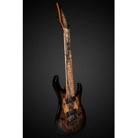The Legator N8FOD Ninja Overdrive is a high-performance 8-string multi-scale guitar built for modern players who demand precision and versatility. Featuring a 26.5"–27.5" multi-scale design, this guitar provides optimal string tension and effortless playability across all registers. The bolt-on roasted maple neck and 18” radius pale moon ebony fingerboard ensure a fast and comfortable feel, while Luminlay side dots and offset inlays improve visibility in low-light settings. The alder body, topped with a striking California Buckeye Burl finish in Jupiter Burst Gloss, delivers a resonant and balanced tone. Equipped with Fishman Fluence Modern pickups with push/pull voice selection, the N8FOD provides a dynamic range of powerful tones. Additional features include an LED killswitch, master volume control, 3-way blade switch, and Legator’s 22:1 ratio locking tuners for rock-solid tuning stability.