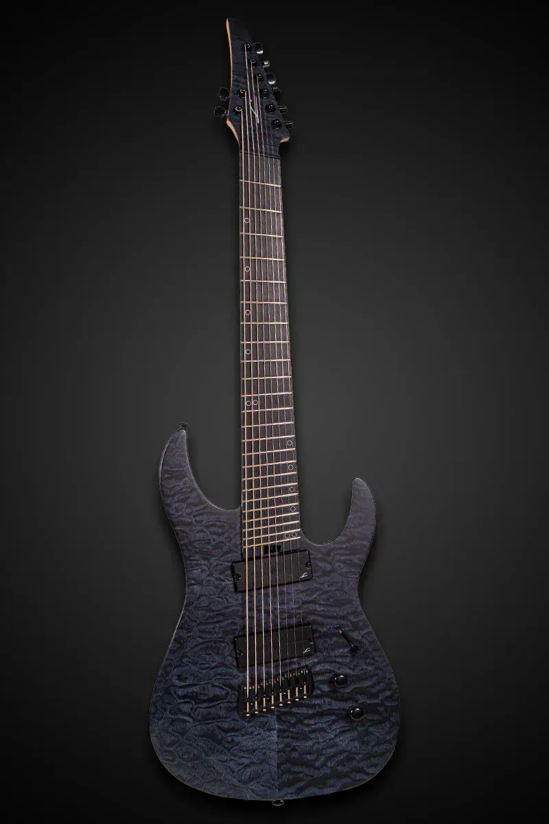 The Legator N8FSS Ninja Super Shred is a multi-scale beast built for high-performance shredding and heavy riffs. With its 26.5"-27.5" multi-scale Richlite composite fingerboard, bolt-on 3-piece maple neck, and lightweight mahogany body, this guitar offers unparalleled playability and tonal depth. The stunning quilted maple top adds visual flair, while the Legator Aftershock active humbuckers deliver crushing tones with clarity and punch. Equipped with 3mm jumbo stainless steel frets, a Graphtech nut, and Legator’s exclusive brass multi-scale bridge and locking tuners, this guitar is designed for precision and reliability.