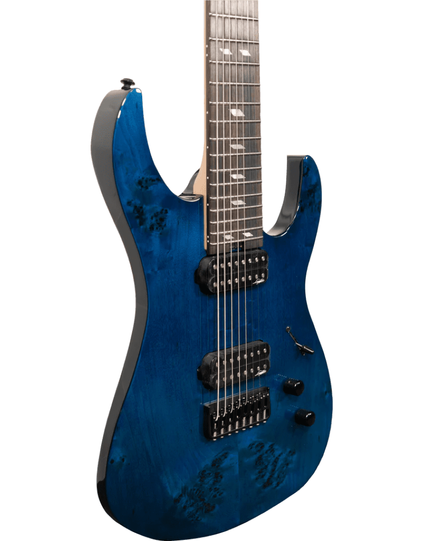 The Super Shred series from Legator offer fantastic value for money, with stand-out features like a super-thin Maple neck, Ebony fretboard, lightweight Mahogany/Poplar Burl body, stainless steel frets, locking tuners, brass bridge, GraphTech nut and new super-hot Aftershock ceramic pickups. These guitars are pro-level shred machines at an affordable price. The classic Ninja design doesn't just look killer, but offers fantastic balance, and the Mahogany body adds plenty of resonance to the versatile tones that the Aftershock pickups are capable of.