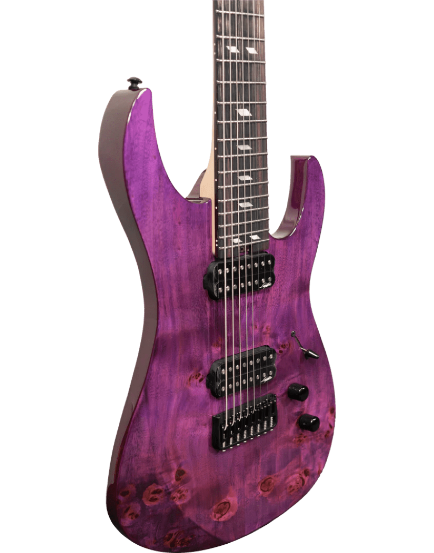 The Super Shred series from Legator offer fantastic value for money, with stand-out features like a super-thin Maple neck, Ebony fretboard, lightweight Mahogany/Poplar Burl body, stainless steel frets, locking tuners, brass bridge, GraphTech nut and new super-hot Aftershock ceramic pickups. These guitars are pro-level shred machines at an affordable price. The classic Ninja design doesn't just look killer, but offers fantastic balance, and the Mahogany body adds plenty of resonance to the versatile tones that the Aftershock pickups are capable of.