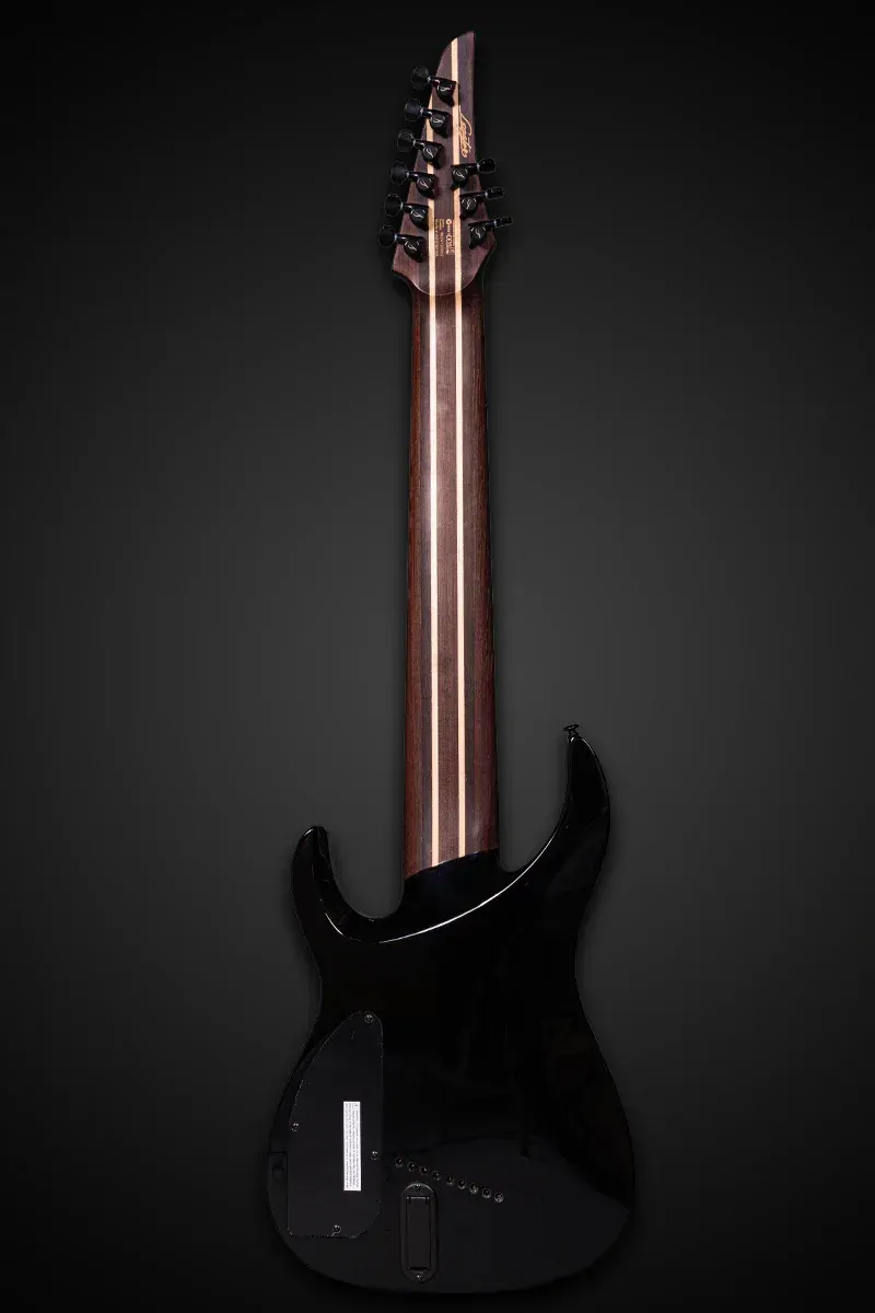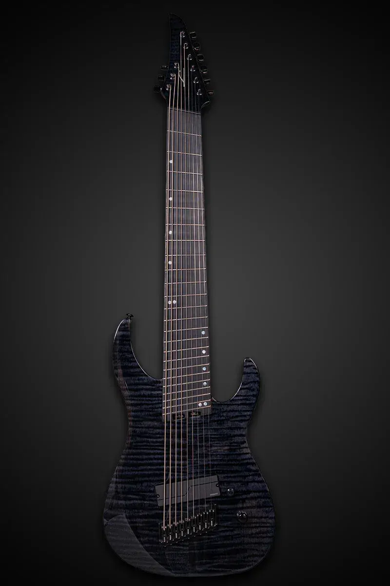 The Legator N9F Ninja Super Shred is a purpose-built 9-string for players seeking extended range and massive tonal power. Its 28.5"–30" multi-scale design ensures balanced string tension, perfect intonation, and effortless playability across the low and high registers. The 5-piece wenge/maple set-through neck and composite Richlite fingerboard with a 14"–16" compound radius provide rock-solid stability and smooth playability, while dual-truss rod reinforcement keeps the neck stable under extreme tension. Equipped with a Fishman Fluence Modern pickup with push/pull voice selection, a killswitch, and Legator’s custom multiscale bridge, this guitar delivers crushing tones with precision. Locking tuners and jumbo stainless-steel frets make this an ideal instrument for technical players who demand reliability and clarity.